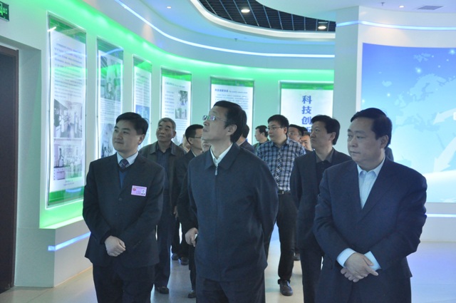 上圖為臨沂市國(guó)土資源局局長(zhǎng)李彥普(前排右三)參觀我公司展廳時(shí)的情景