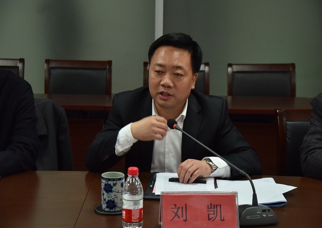 上圖為區委副書記、區長劉凱介紹羅莊區的情況