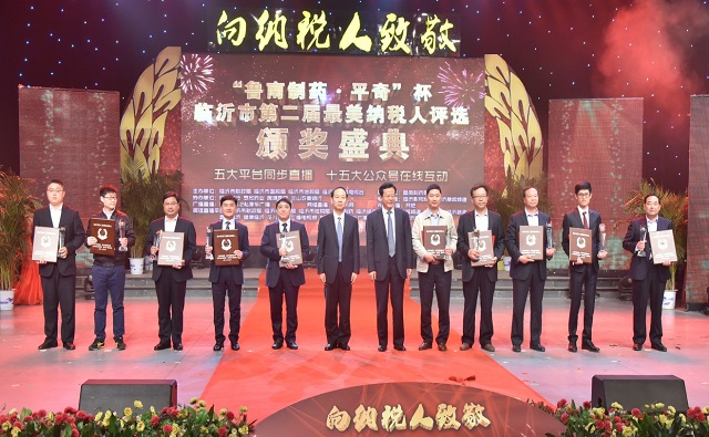 4月28日,臨沂市第二屆“最美納稅人”評選頒獎盛典在臨沂市電視臺演播大廳舉行,臨沂市政協主席徐濤,市委常委、常務副市長李沂明,市人大常委會副主任丁善余,市政協副主席李宗濤,市財政局、國稅局、地稅局等部門主要負責人出席典禮并為獲獎企業頒獎,股份集團公司副總經理韓風生作為公司代表上臺領獎。