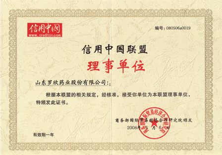 月,山東羅欣藥業股份有限公司成為信用中國聯盟理事單位。