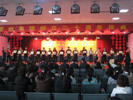 2008年11月16日,羅欣集團創立二十周年慶典在公司四樓大禮堂隆重舉行。公司董事長劉保起先生作了20年創業歷程的總結報告,對與公司長期共同成長,為公司發展做出突出貢獻的員工進行了表彰。獲得“創業元勛”“創業功勛”“金牌員工”“銀牌員工”“銅牌員工”榮譽稱號的代表以及新員工代表分別發了言。這次慶典總結過去、激勵斗志、凝心聚力、完善提高、以此為新起點,再創新的輝煌。