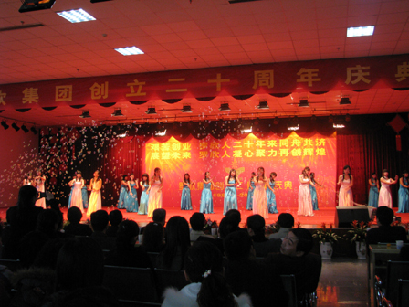 慶典舉行期間,員工組織了文藝演出,表演了精心編排的:歌曲、舞蹈、相聲、小品、武術等內容豐富多彩的節目,來慶祝集團20歲的生日。