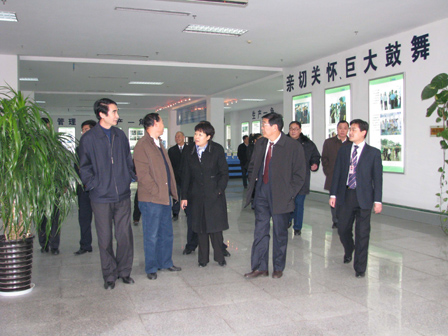 2008年12月4日,臨沂市人大常委會黨組書記、第一副主任朱紹陽(前排右二)、帶領(lǐng)駐臨沂市的全國人大代表和駐市直的部分省、市人大代表一行30余人蒞臨我公司指導(dǎo)工作,羅莊區(qū)委副書記、代區(qū)長劉淑秀(前排右三)、羅莊區(qū)人大常委會主任山長青(前排左一)等領(lǐng)導(dǎo)陪同,觀看了公司介紹剪輯片并參觀了公司展廳,對公司的發(fā)展運營情況做了詳細了解。