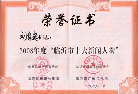2009年1月,由中共臨沂市委宣傳部、臨沂市新聞工作者協(xié)會(huì)、臨沂日?qǐng)?bào)報(bào)業(yè)集團(tuán)、臨沂市廣播電視局組織的“臨沂市十大新聞人物”評(píng)選中,羅欣藥業(yè)董事長(zhǎng)劉保起同志榮獲2008年度“臨沂市十大新聞人物”榮譽(yù)稱號(hào),位列臨沂市十大新聞人物之首。