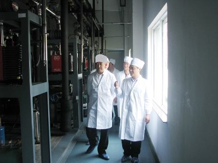 上圖為中信產業投資基金管理有限公司投資總監劉東(左一)先生一行參觀公司生產車間時的情景