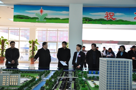 上圖為調研組領導觀看公司沙盤布局的情景