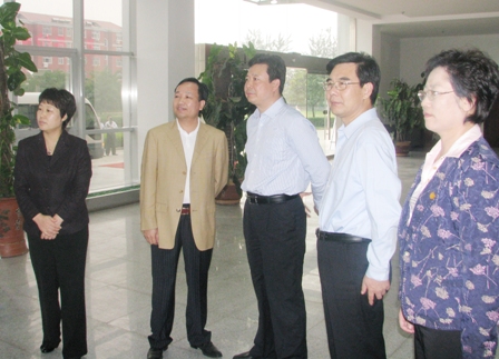 上圖為省委常委、宣傳部長(zhǎng)李群(右三)、市委書記、市人大常委會(huì)主任連承敏(右二)、 市委常委、宣傳部長(zhǎng)丁鳳云(右一)、區(qū)委副書記、區(qū)長(zhǎng)劉淑秀(左一)一行參觀公司展廳時(shí)的情景