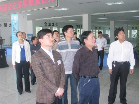2010年10月24日, 臨沂市醫(yī)藥產(chǎn)業(yè)集群座談會(huì)在我公司召開(kāi),市發(fā)改委高技術(shù)科謝忠君科長(zhǎng)及與會(huì)人員參觀了公司,謝科長(zhǎng)一行詳細(xì)了解了羅欣集團(tuán)的企業(yè)文化、發(fā)展歷程、產(chǎn)品開(kāi)發(fā)、市場(chǎng)營(yíng)銷、境外上市及裕欣分廠建設(shè)、集團(tuán)“十二五”發(fā)展規(guī)劃介紹等情況,對(duì)公司健康快速的發(fā)展給予高度評(píng)價(jià)。