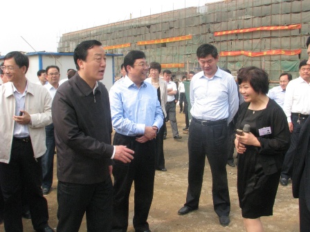 上圖為公司總經理李明華(前排右一)在項目建設現場向市委副書記、市長張務鋒(前排左二)匯報項目建設情況