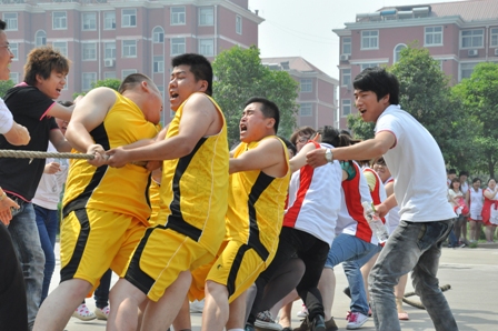 當(dāng)天早上8:30,來(lái)自各個(gè)團(tuán)支部的上百名運(yùn)動(dòng)員齊聚在運(yùn)動(dòng)場(chǎng)上,整裝待發(fā)。隨著裁判員的一聲哨響,緊張激烈的各項(xiàng)比賽正式開(kāi)始了。拔河比賽中,場(chǎng)上參賽隊(duì)齊心竭力,表現(xiàn)出頑強(qiáng)的意志和拼搏的精神,既賽出了水平又賽出了風(fēng)格。在拉拉隊(duì)震耳欲聾的吶喊聲中,參賽隊(duì)員雙方隊(duì)員互不相讓?zhuān)粋€(gè)個(gè)死死的拉緊繩子,咬緊牙根,一條沉重的繩子被兩方隊(duì)員拉得筆直。場(chǎng)上的雙方隊(duì)員在奮力地拼搏,而場(chǎng)下拉拉隊(duì)在領(lǐng)隊(duì)的帶領(lǐng)下熱情地為隊(duì)員吶喊助威,吶喊聲一浪高一浪。中長(zhǎng)跑比賽中,所有參賽運(yùn)動(dòng)員有如萬(wàn)箭齊發(fā),你追我趕,有一種不甘示弱、永爭(zhēng)第一的氣勢(shì)。賽場(chǎng)上,運(yùn)動(dòng)員們揮灑汗水,整個(gè)運(yùn)動(dòng)場(chǎng)上充滿了“團(tuán)結(jié)拼搏、挑戰(zhàn)自我,勇奪第一”的熱烈氣氛。