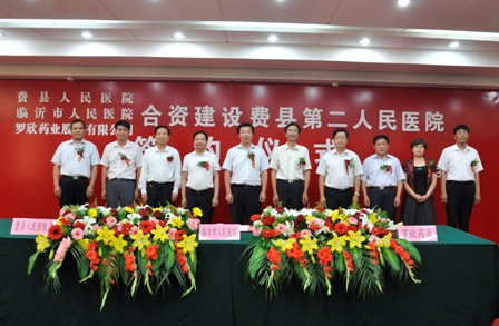 費(fèi)縣人民醫(yī)院、臨沂市人民醫(yī)院、羅欣藥業(yè)合資建設(shè)費(fèi)縣第二人民醫(yī)院簽約儀式隆重舉行(2012-6-14)