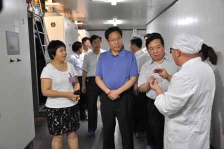 上圖為蘭山區(qū)黨政考察團(tuán)參觀裕欣分廠凍干粉針劑生產(chǎn)車間時的情景